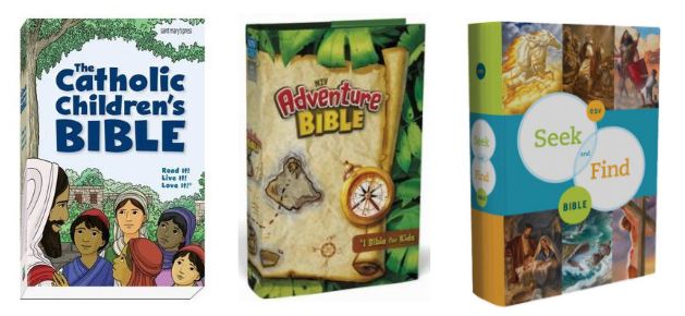 A while back I got my first Catholic study Bible, and that was a difficult choice.* Recently, however, I bought another “first” Bible – this time for one of my kids. Wow, I thought shopping for an adult Bible was scary! In case you are facing the same decision yourself, here is what I found.