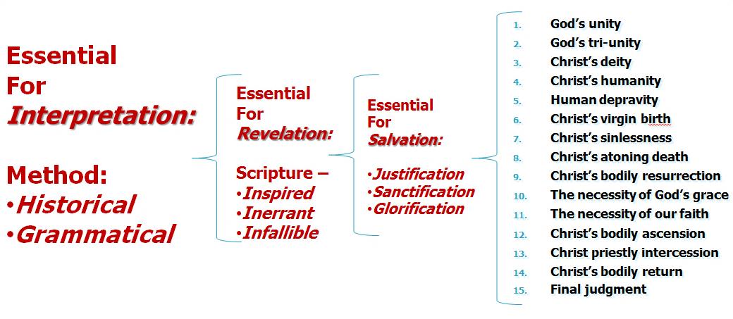 In addition to these soteriolological essentials, Geisler adds that the Bible as inerrant, infallible, and inspired Scripture is also an epistemological (or revelational) essential, because we could not know the essentials otherwise. Finally, the hermeneutical (or interpretive) essential is listed as the means by which we can properly derive the other essentials from Scripture. While the practical results of this method are not necessarily problematic as such, this method is considerably so.