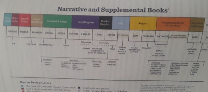 Each book in the Bible has its place in the Timeline indicated at the top by a color-coded arrow and the section’s title.