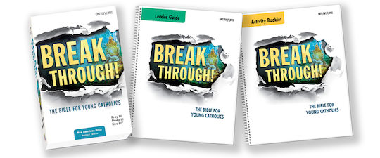 Becoming Catholic meant learning about Catholic Bibles, and when it was time for my first born to have his own, I did some extensive shopping for a children’s Bible. I settled on The Catholic Children’s Bible from St. Mary’s Press, and have enjoyed it for years. When he outgrew it and gifted it to his younger siblings, I began searching for a repalcement. The same publisher also had a Bible for middle-schoolers called Breakthrough! The Bible for Young Catholics. I thought I’d take a look.